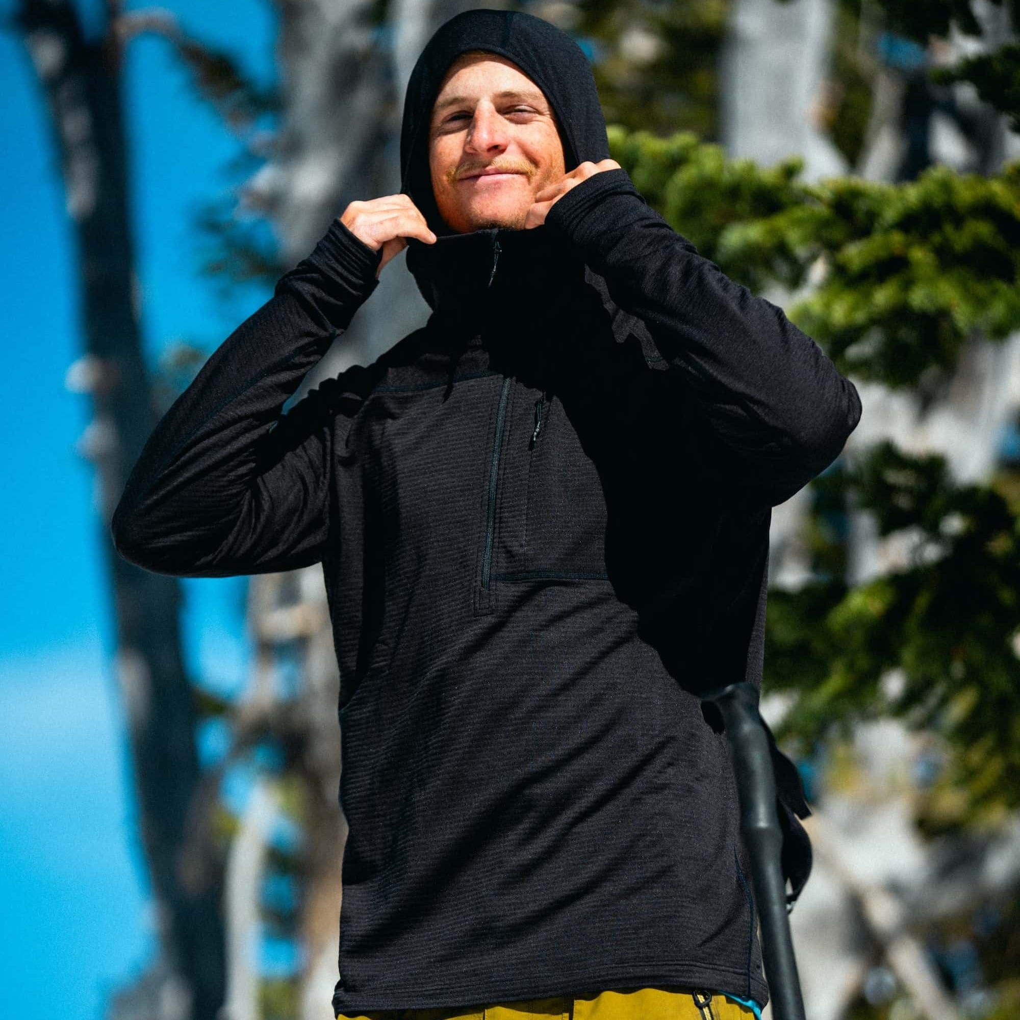 The Convict Half Zip Pullover Hoodie will be your go-to mid layer for high output, high aerobic days in cool weather. Made with LT Grid Fleece, this lightweight pullover regulates the start/stop cycle of backcountry travel better than anything else we’ve tried. Air pockets keep you warm when you stop and breathe well when you’re working hard. With Merino against skin, it resists odor too. It weighs as much as a standard t-shirt and compresses down to fit in your pack when not needed. It’s a must-have for backcountry skiing, trail running and cold weather hiking.